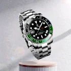 PAGANI DESIGNS premier chronographe à double fuseau horaire avec fonction GMT, boîtier en acier inoxydable de 40 mm avec lunette noir-bleu, lunette rotative en céramique et cadran noir, verre saphir qui dépasse comme une loupe et permet une vision claire.En portant cette montre, vous pouvez non seulement voir sa douceur et sa joie dans la vraie vie, mais aussi ressentir l’imagination infinie d’un voyage extraordinaire.L’aiguille des heures GMT est une solution réfléchie aux problèmes de décalage horaire.Son excellente fonction, ses performances fiables et son design esthétique unique la rendent très populaire parmi les touristes et une montre de voyage mondiale incontournable.